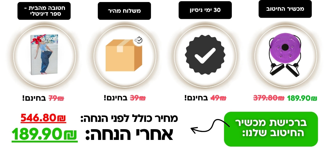 30 ימי ניסיון, משלוח מהיר בחינם וספר דיגיטלי מאיתנו! הזדמנות חד פעמית להטבה המיוחדת, אל תפספסו!